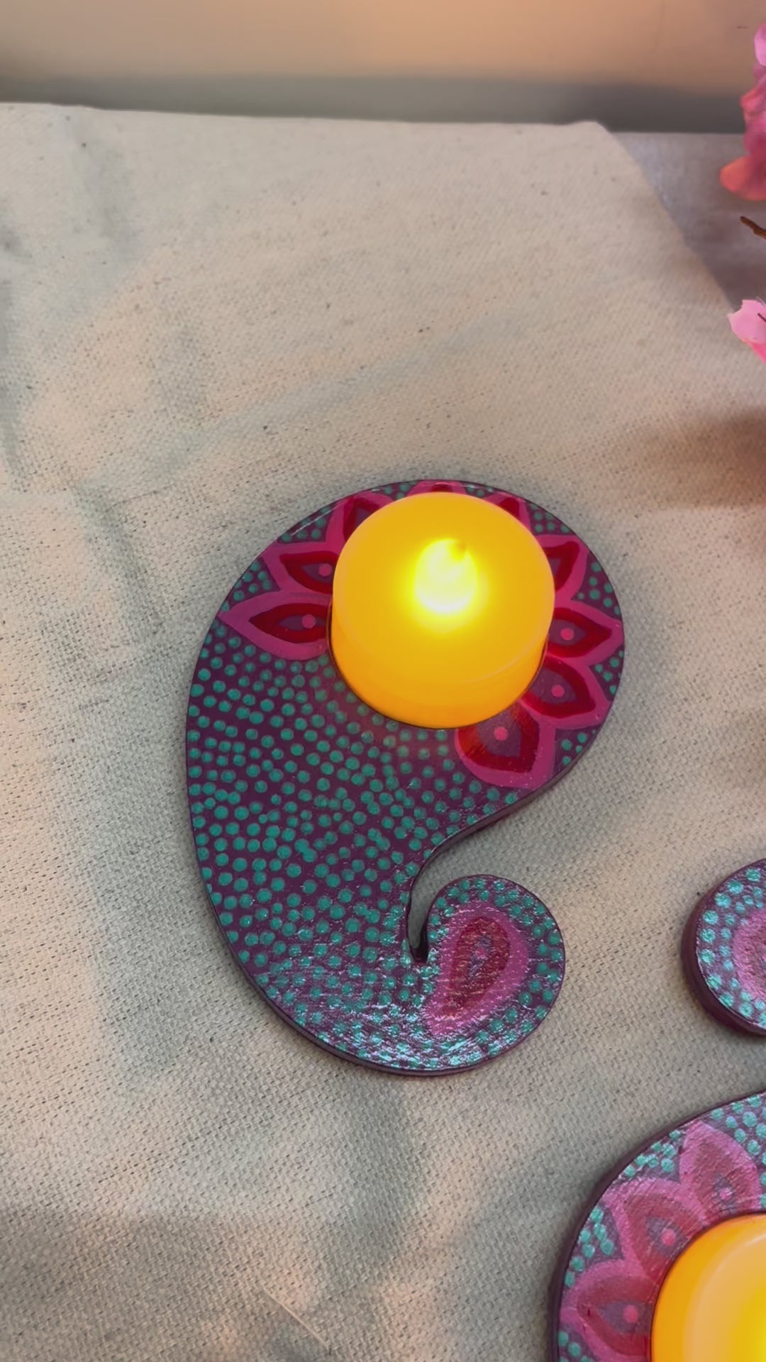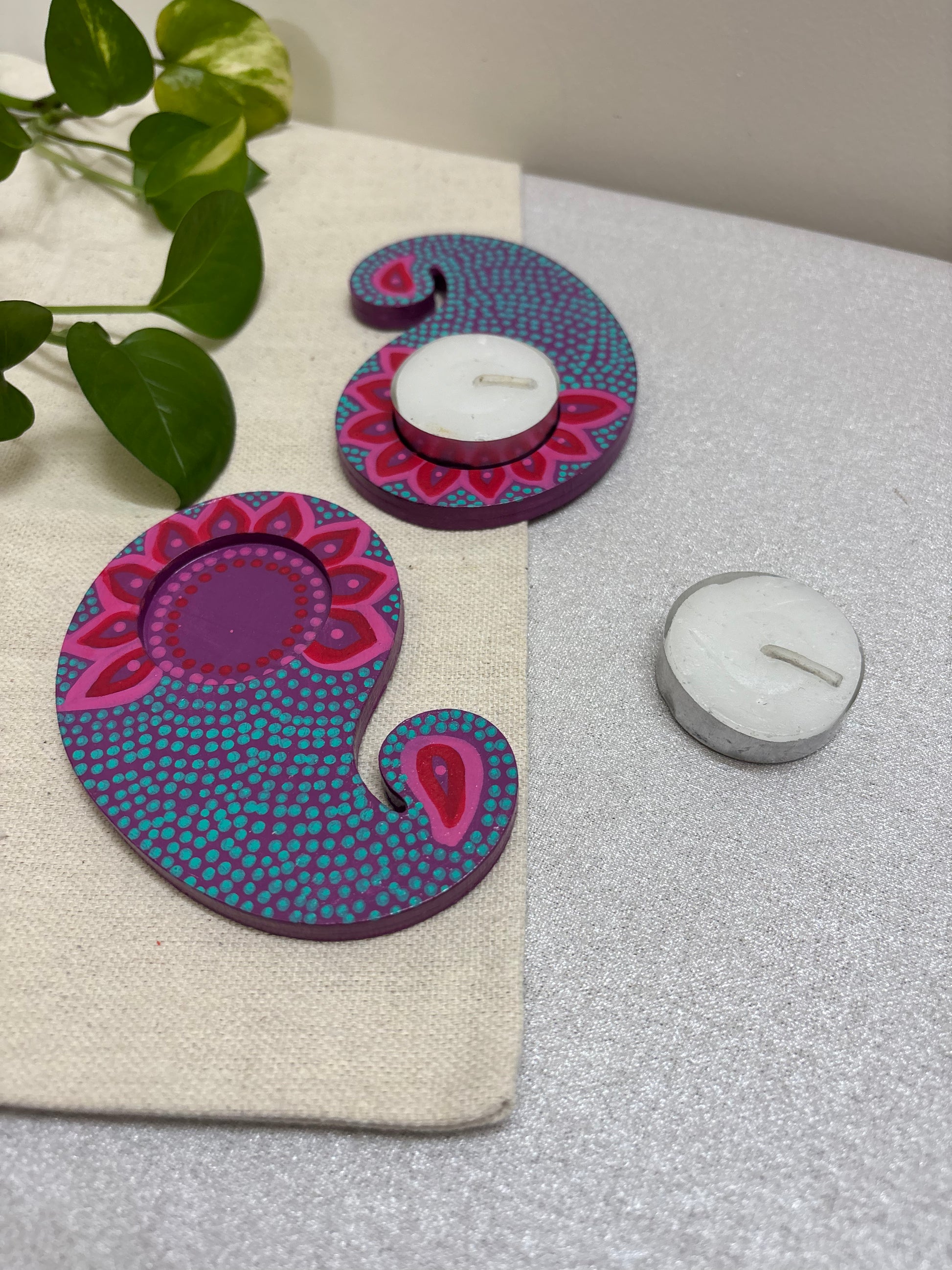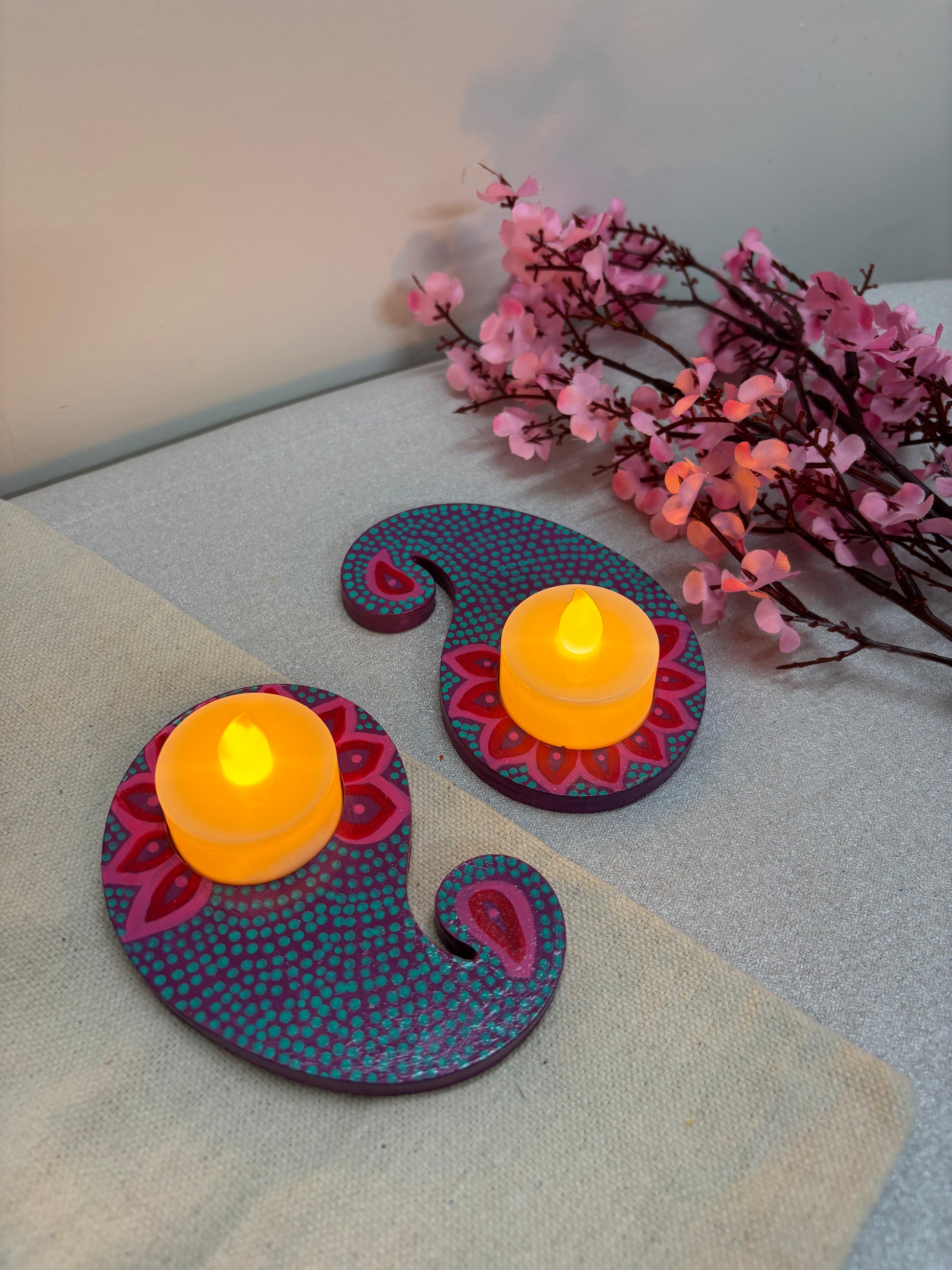 Ābhā Hand-Painted Paisley Tea Light Holders