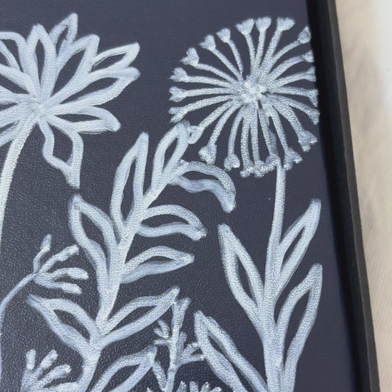 - Hand-painted Notebook - Sleek black cover with white botanical floral art, ideal for notes and journaling.