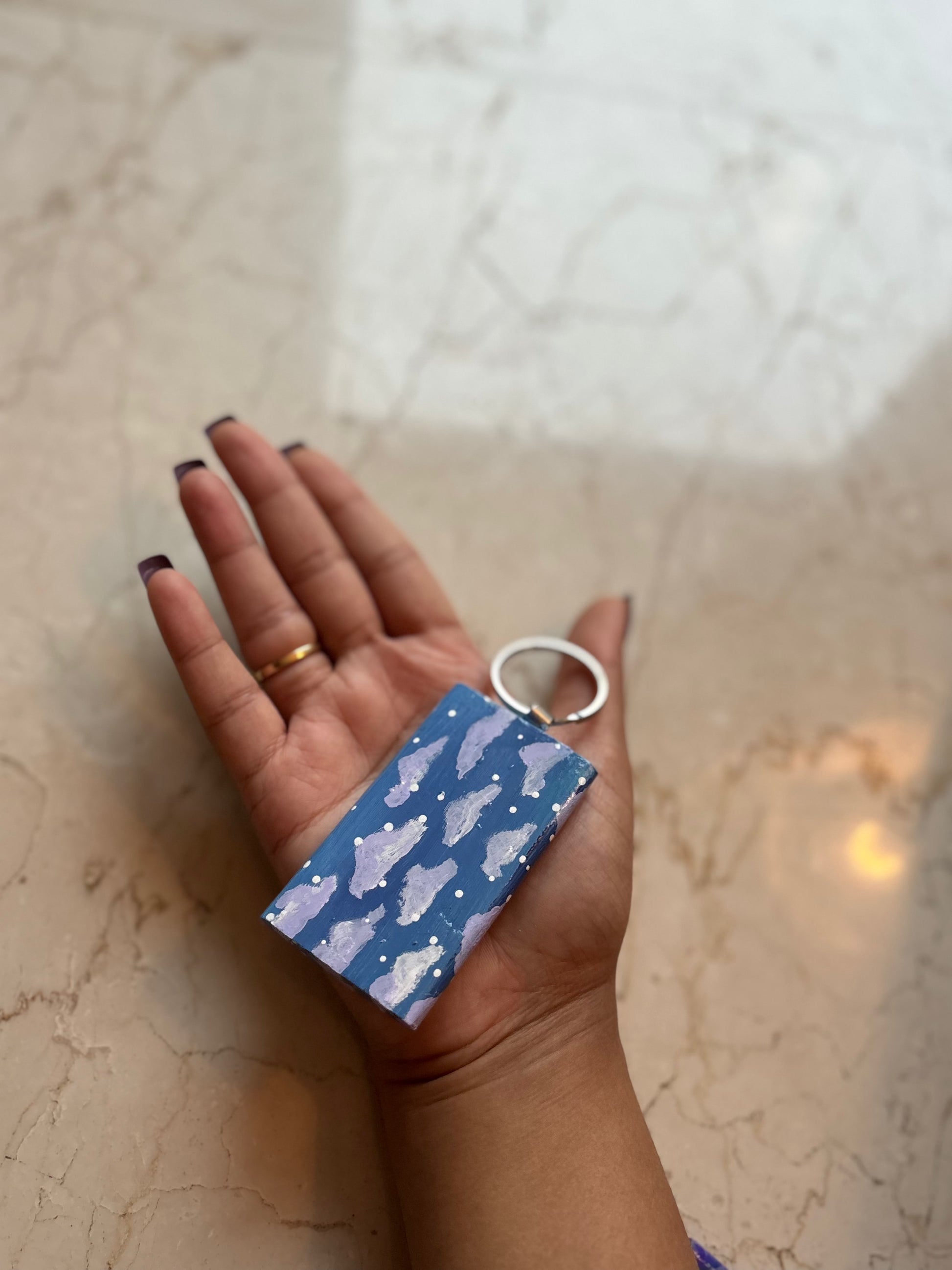 A dreamy hand-painted wooden keychain designed to add a touch of art to your everyday essentials. Inspired by cloudscapes and starry skies, each piece is unique and crafted with care.