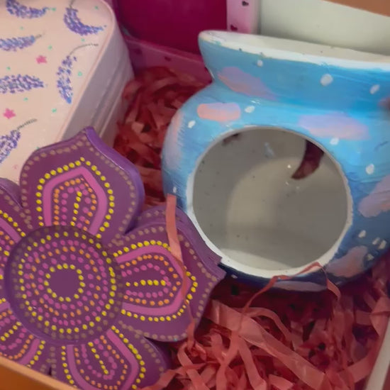 - 1 ceramic aroma diffuser – hand-painted with calming tones