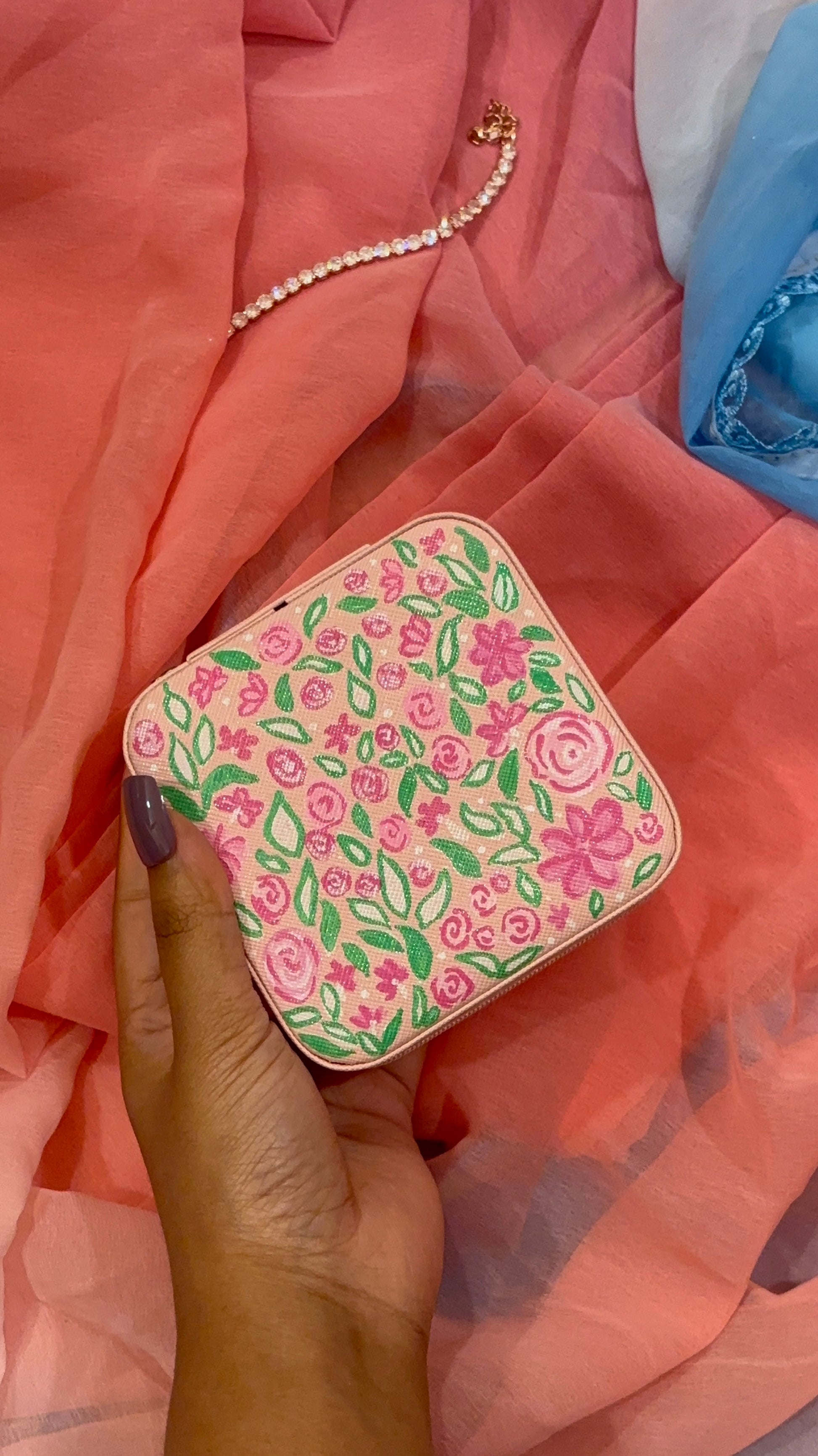 💖 1 hand-painted PU-leather jewellery box