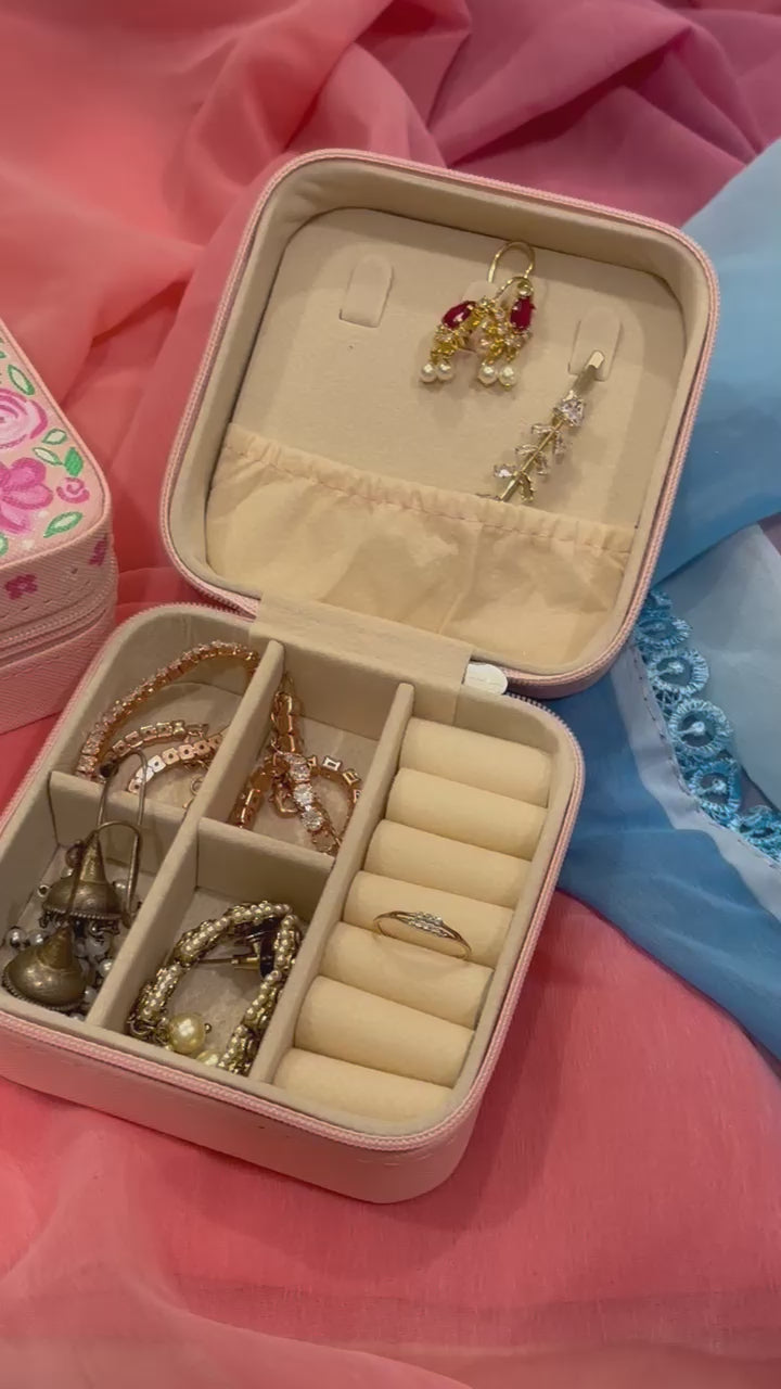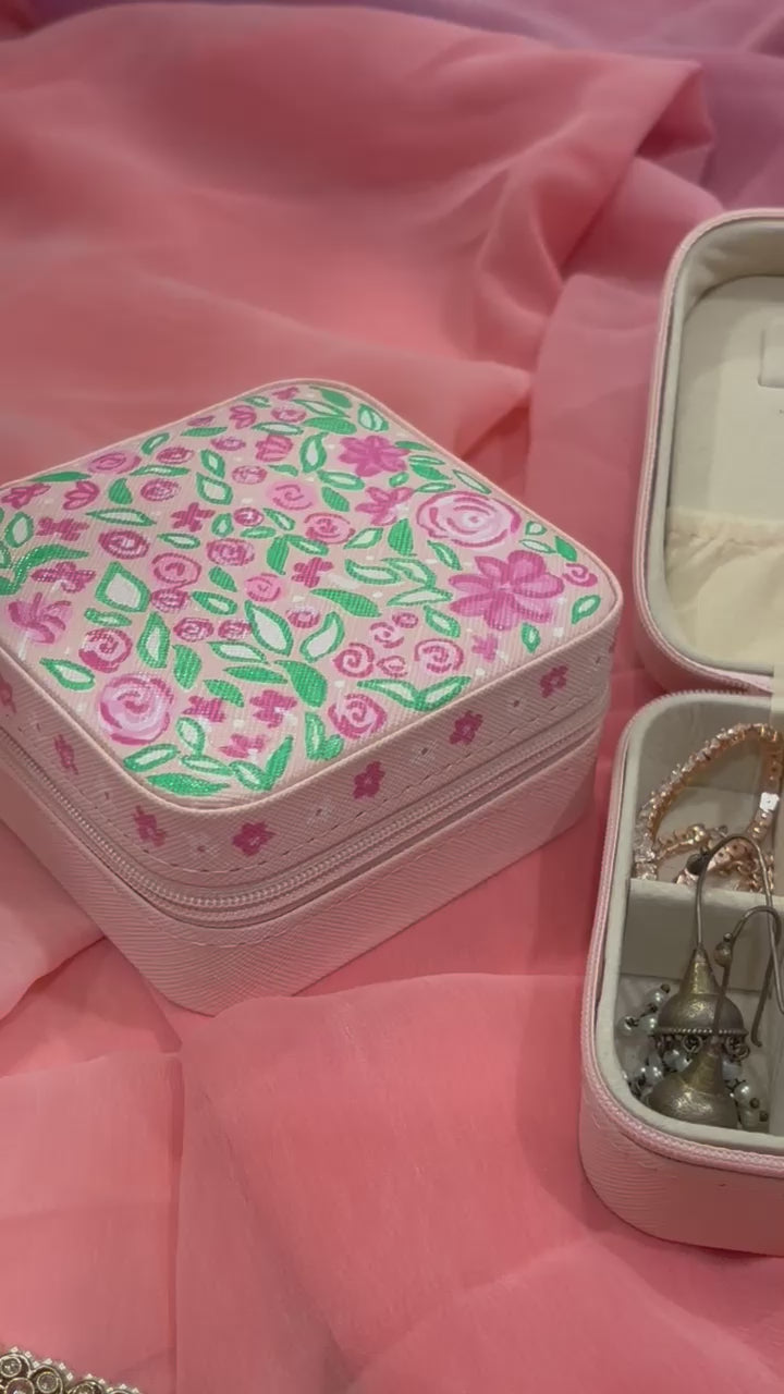 Gulnaar is a celebration of delicate things - painted with blooming florals and soft strokes, this compact jewellery box is a graceful keeper of your favourites. With compartments to hold rings, earrings, studs, and a little surprise or two, it’s perfect for travel or everyday use.