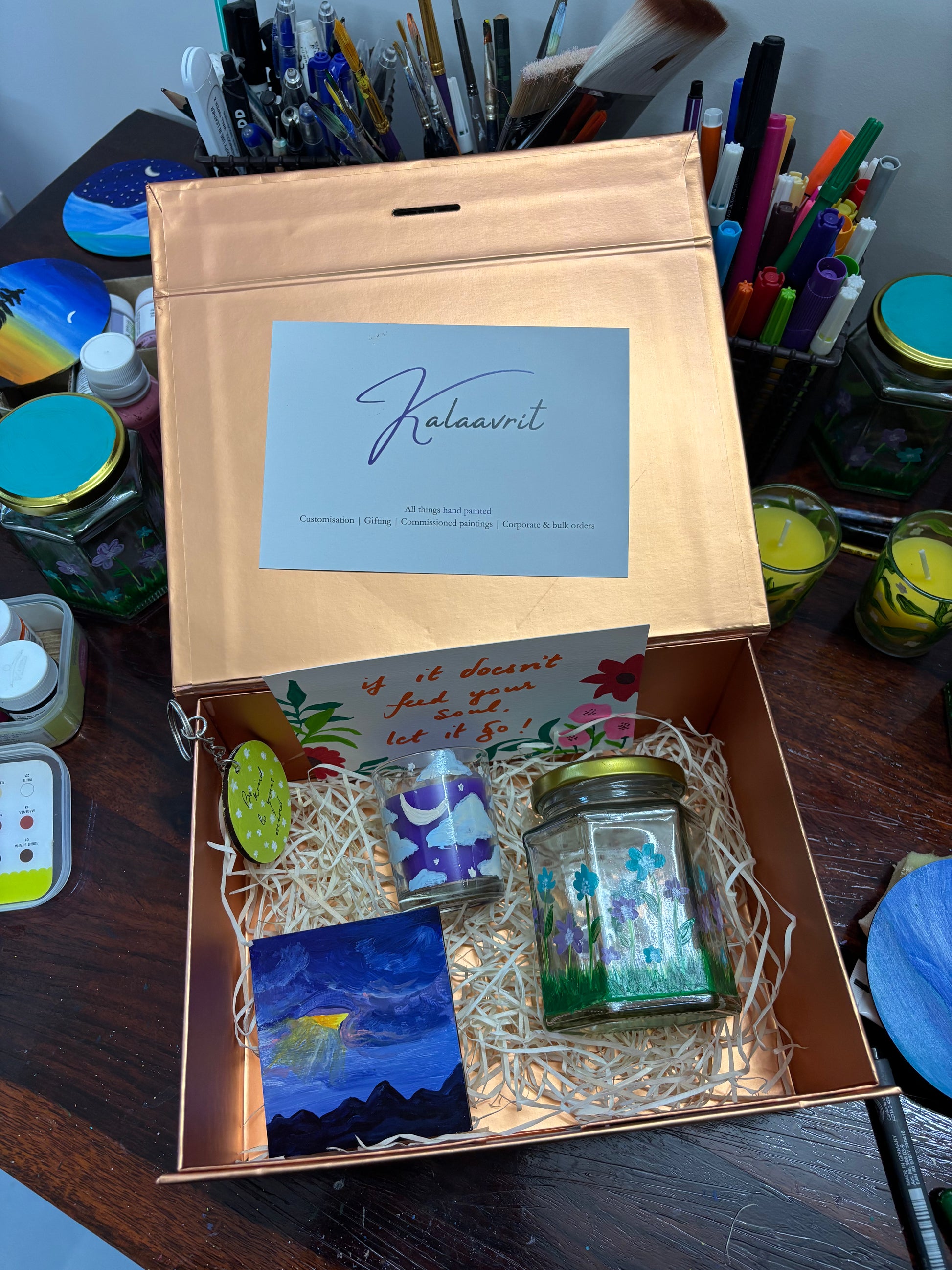 Celebrate the beauty of small victories and heartfelt gestures with Little Wins - a thoughtfully hand-painted gift hamper. Designed to inspire, comfort, and spark joy, this artisanal bundle is a reminder that even the tiniest steps forward matter.