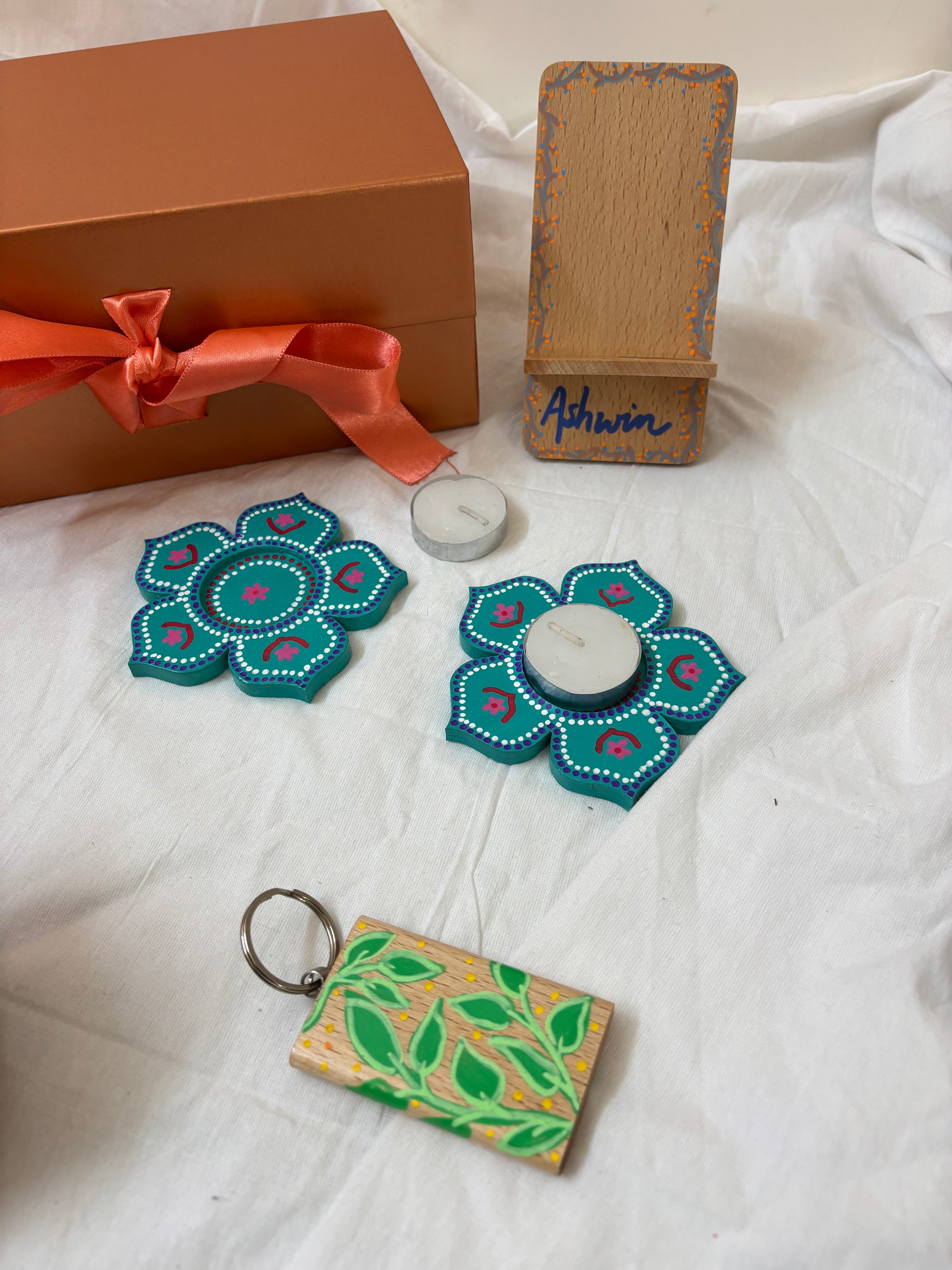 A thoughtfully curated corporate gift hamper designed to combine artistry with everyday utility. Each piece is hand-painted and personalised, making it perfect for festive gifting, employee milestones, or client appreciation.