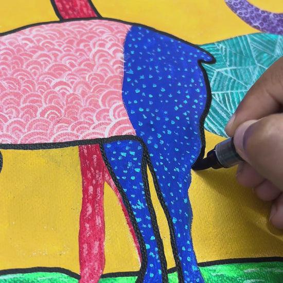 - Style: Gond Folk Art (tribal art tradition of Central India)