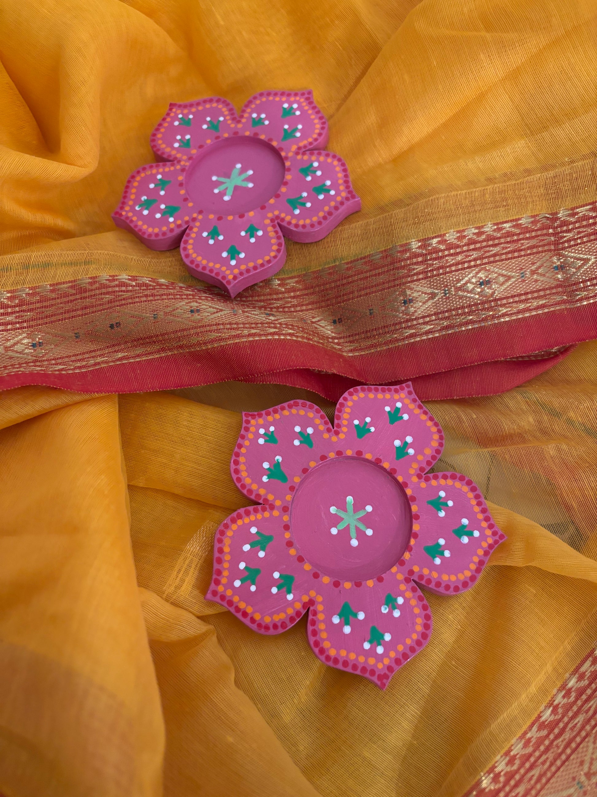 Add a pop of festive charm to your decor with Phool, our hand-painted tea-light holders crafted in the shape of blooming flowers. Whether it’s Diwali, Rakhi, or just a cozy evening setup, these lightweight stands elevate the vibe instantly.