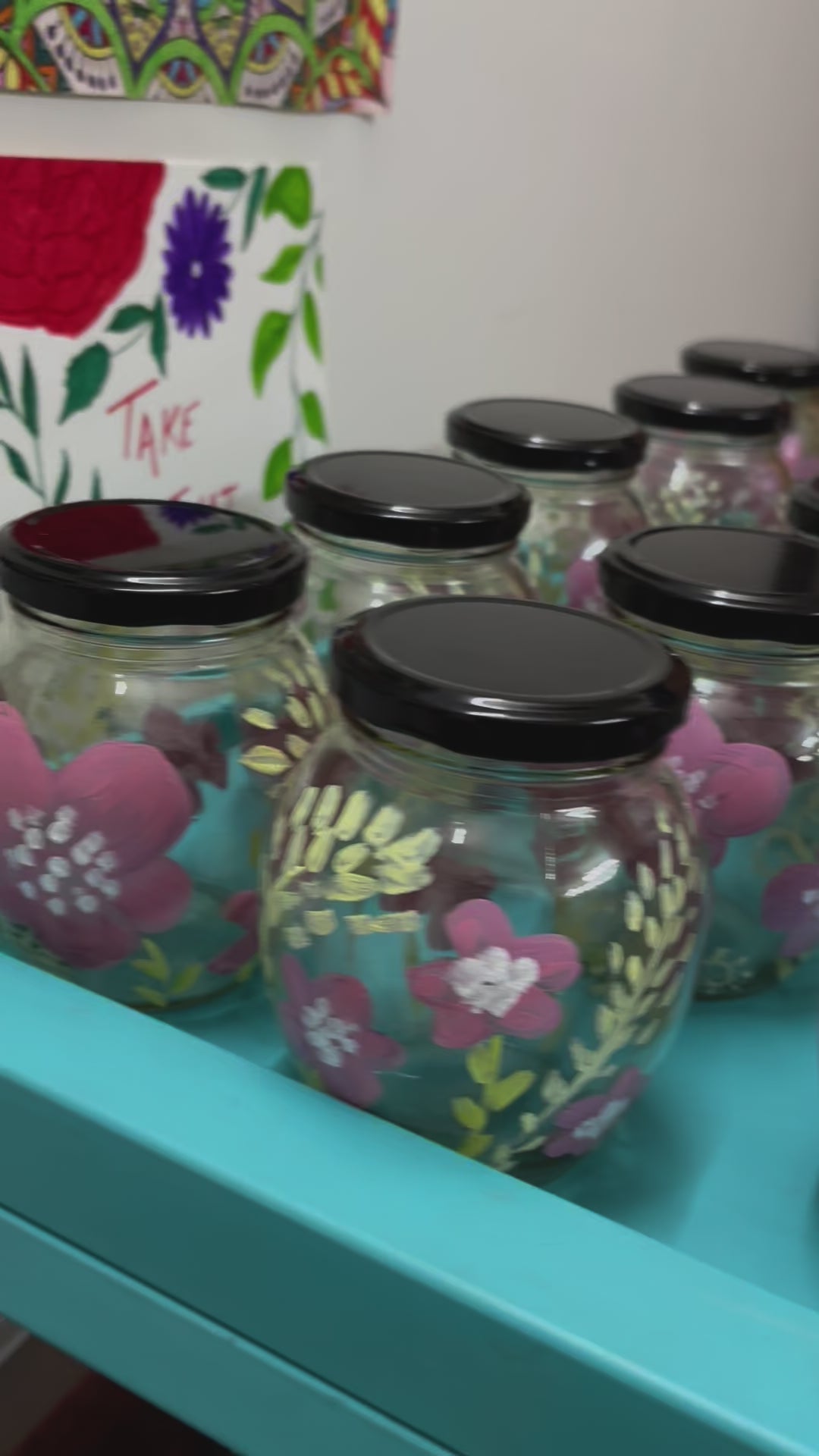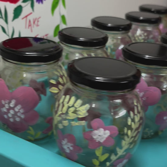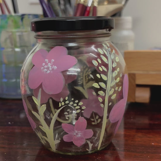 Pink Bloom is a hand-painted glass jar featuring expressive pink florals and soft leafy strokes. It’s a functional piece with a touch of charm - perfect for storing trinkets, cotton pads, dry snacks, or thoughtful keepsakes. Whether kept on your shelf, desk, or bathroom counter, it adds a gentle pop of colour to your space.