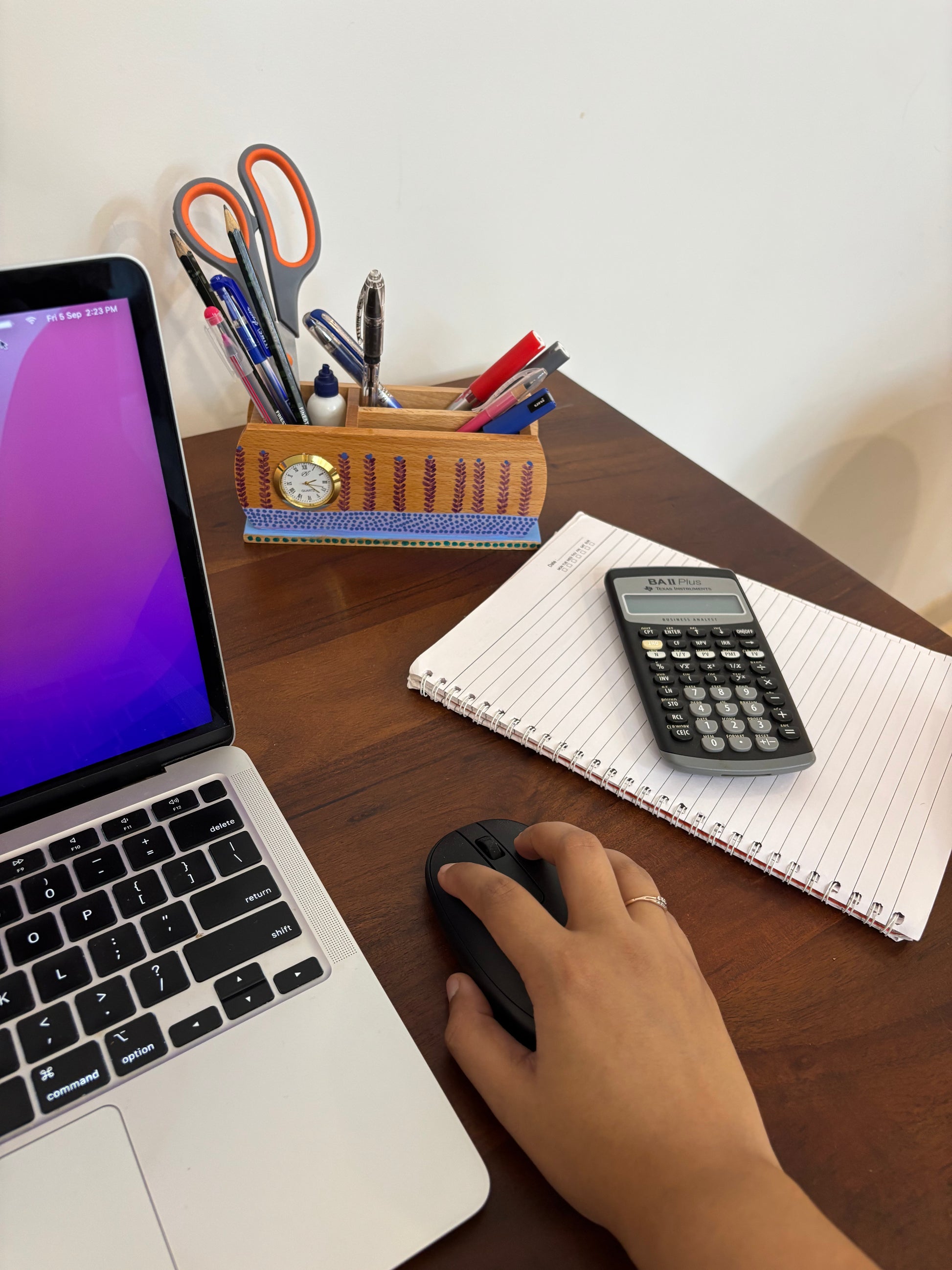 Where art meets order. Reva is a hand-painted wooden desk organizer with an in-built clock, created to keep your pens, notes, and little essentials in place. Its rhythmic line-and-dot patterns bring a touch of tribal artistry to your workspace, while the warm wood and hand-painted strokes make it more than just utility - it’s a desk companion with soul.