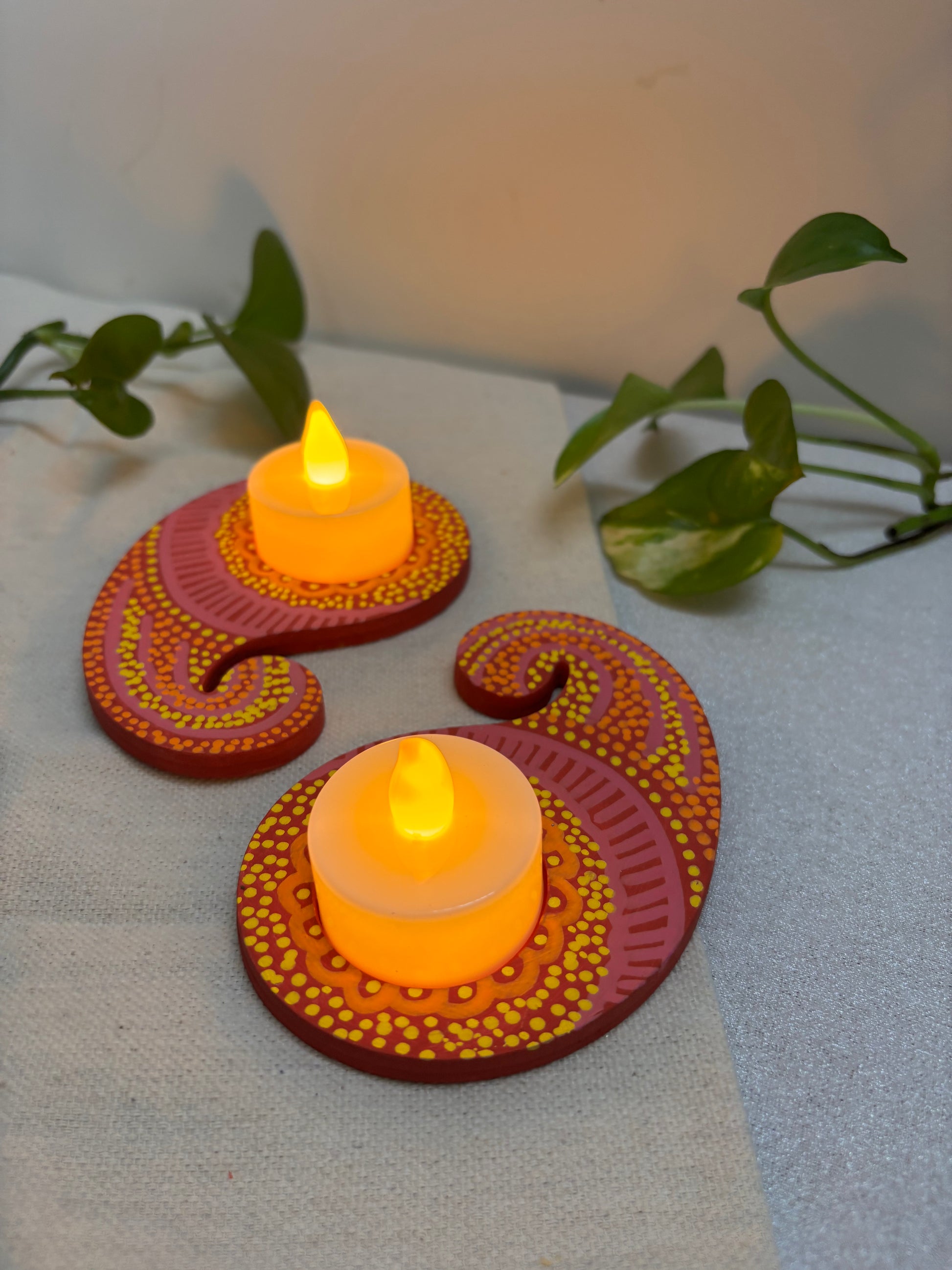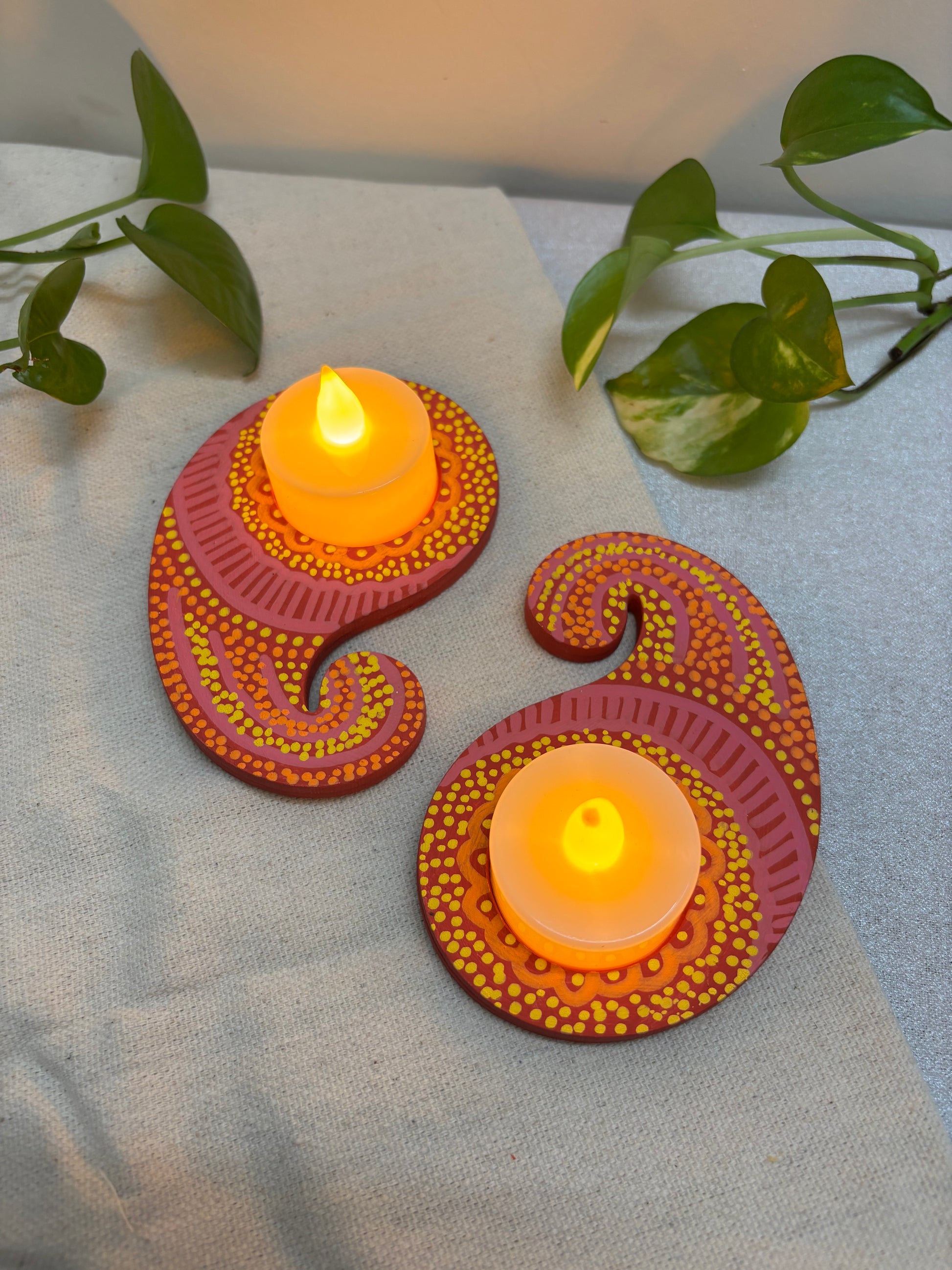 Roshni Hand-Painted Paisley Tea Light Holders