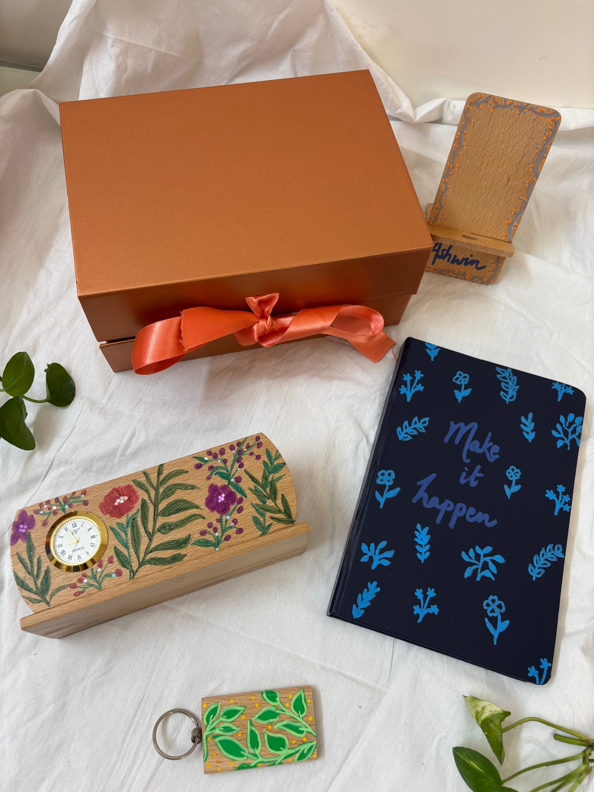 A thoughtfully curated desk & festive gift hamper that blends everyday utility with hand-painted artistry. Perfect for corporate gifting, employee milestones, and festive celebrations, this hamper brings together elegant stationery and personalised desk essentials.