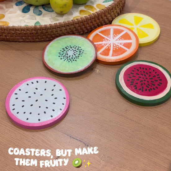 Each coaster is painted to look like a fruity slice, adding color and cheer while protecting your table from stains and rings. They’re fun, functional, and totally unique - just like that fruit bowl you never have to refill.