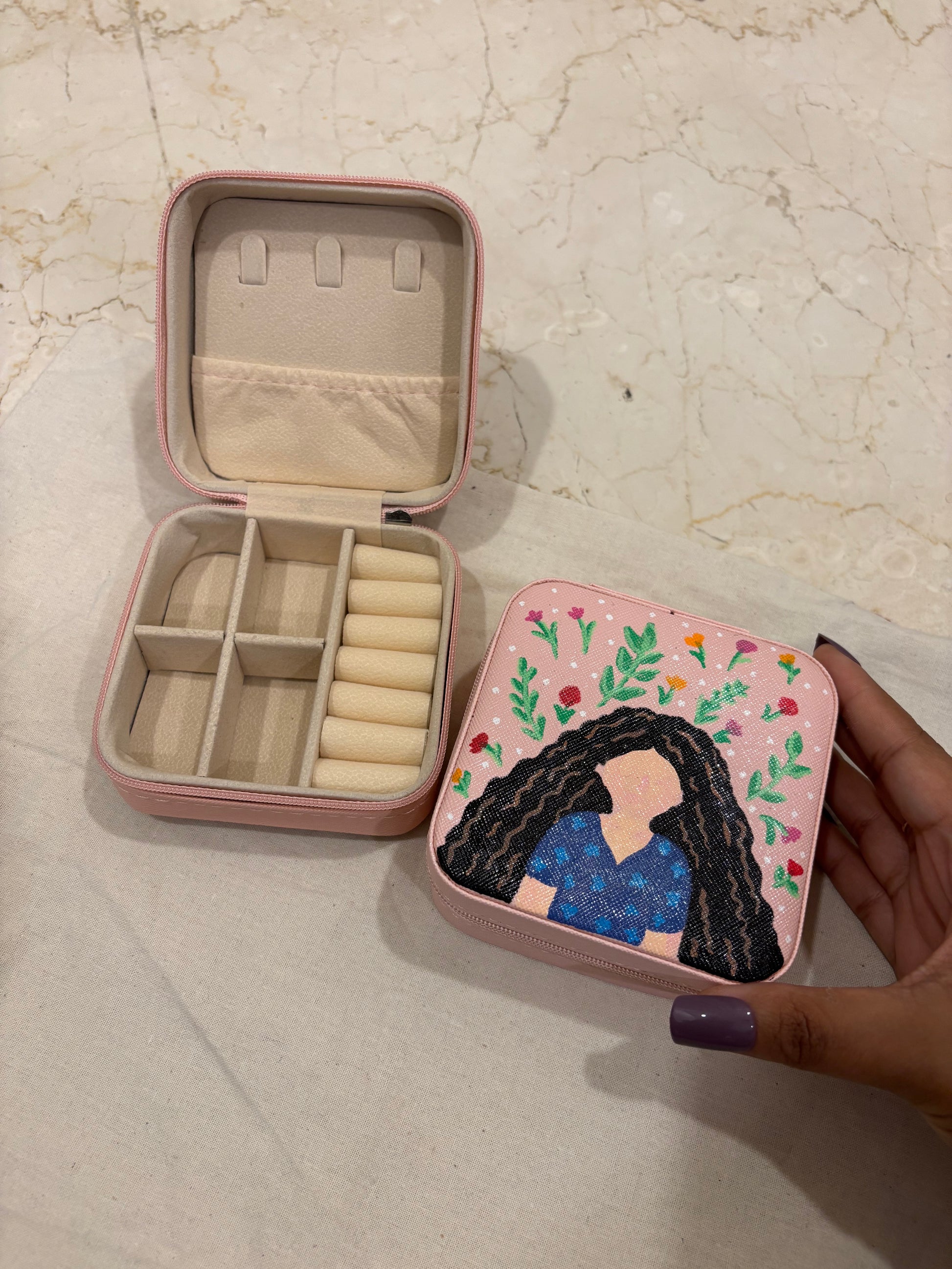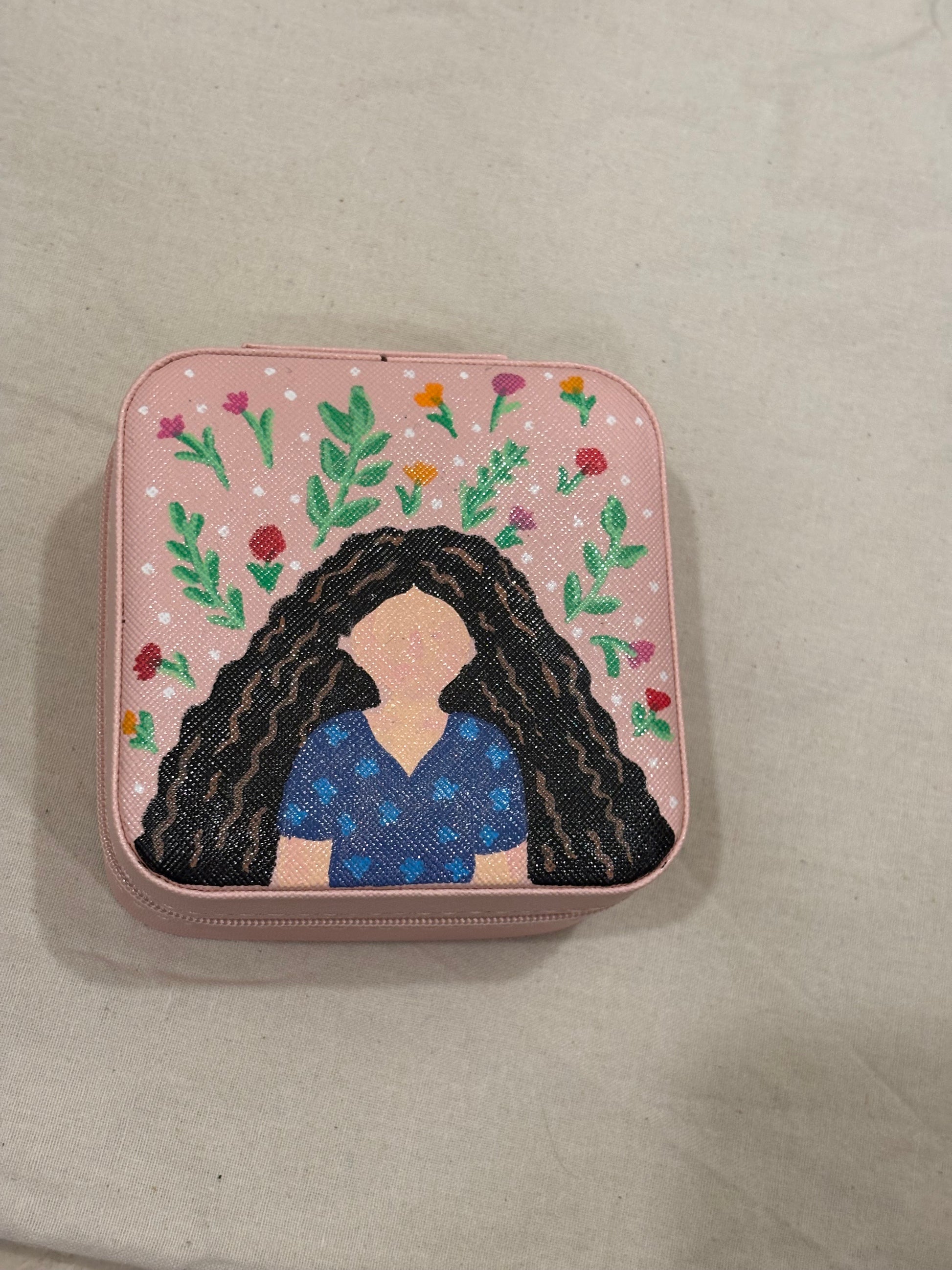 Untamed is a hand-painted jewellery box that celebrates wild beauty, fierce softness, and the power of growing in your own way. With flowing black curls, a faceless silhouette, and delicate floral details, this box is as much a piece of art as it is a functional keepsake.